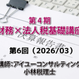 第4期)財務×法人税基礎講座 【受講者専用】 第4期 財務×法人税基礎講座(5回目) 2026年2月4日 webmaster このコンテンツは受講者のみ閲覧できます。 閲覧するためにはSHE事務局からお知らせしたパスワードの入力が必要です。 受講者の方でパスワードが不明な方はSHE事務局までお問合せください。 SHE事務局への問い合わせ \ パスワードが分らない受講生の方は事務局までお問合せください / パスワード: