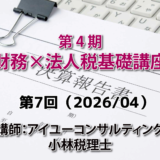 第4期)財務×法人税基礎講座 【受講者専用】 第4期 財務×法人税基礎講座(6回目) 2026年3月24日 webmaster このコンテンツは受講者のみ閲覧できます。 閲覧するためにはSHE事務局からお知らせしたパスワードの入力が必要です。 受講者の方でパスワードが不明な方はSHE事務局までお問合せください。 SHE事務局への問い合わせ \ パスワードが分らない受講生の方は事務局までお問合せください / パスワード: