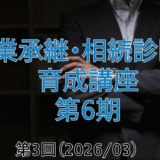 第6期(2026)事業承継・相続診断士養成講座 【受講者専用】 第6期 事業承継・相続診断士講座(2日目) 2026年2月13日 webmaster このコンテンツは受講者のみ閲覧できます。 閲覧するためにはSHE事務局からお知らせしたパスワードの入力が必要です。 受講者の方でパスワードが不明な方はSHE事務局までお問合せください。 SHE事務局への問い合わせ \ パスワードが分らない受講生の方は事務局までお問合せください / パスワード: